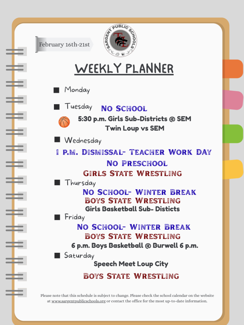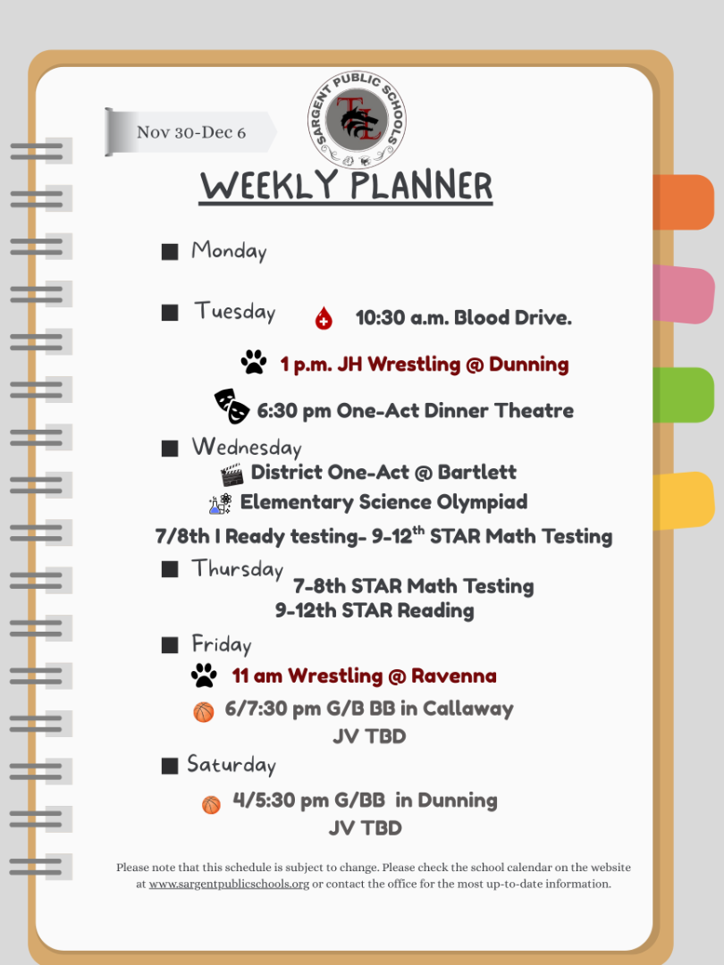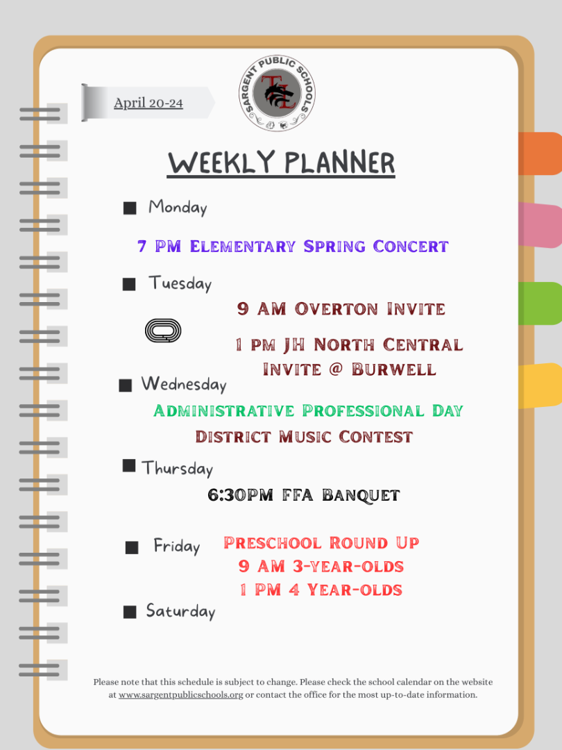 Sargent School Events This Week